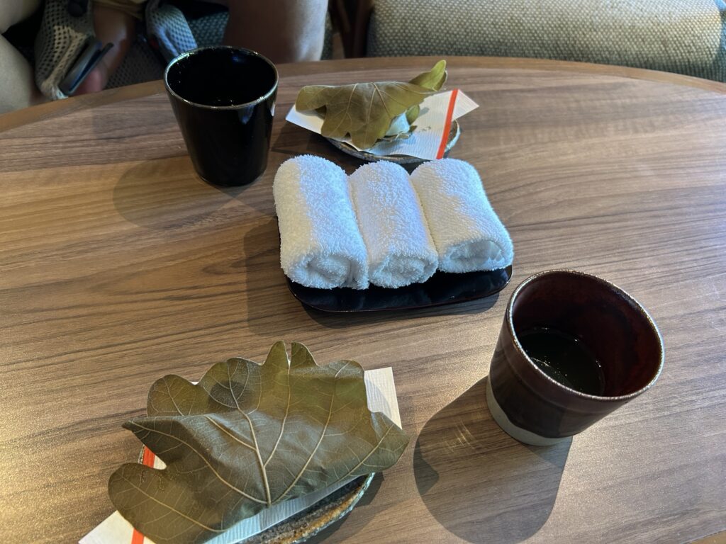 ウェルカムドリンクとスイーツは、お茶と柏餅をきただきました!