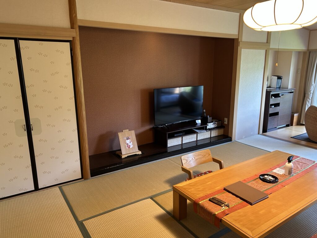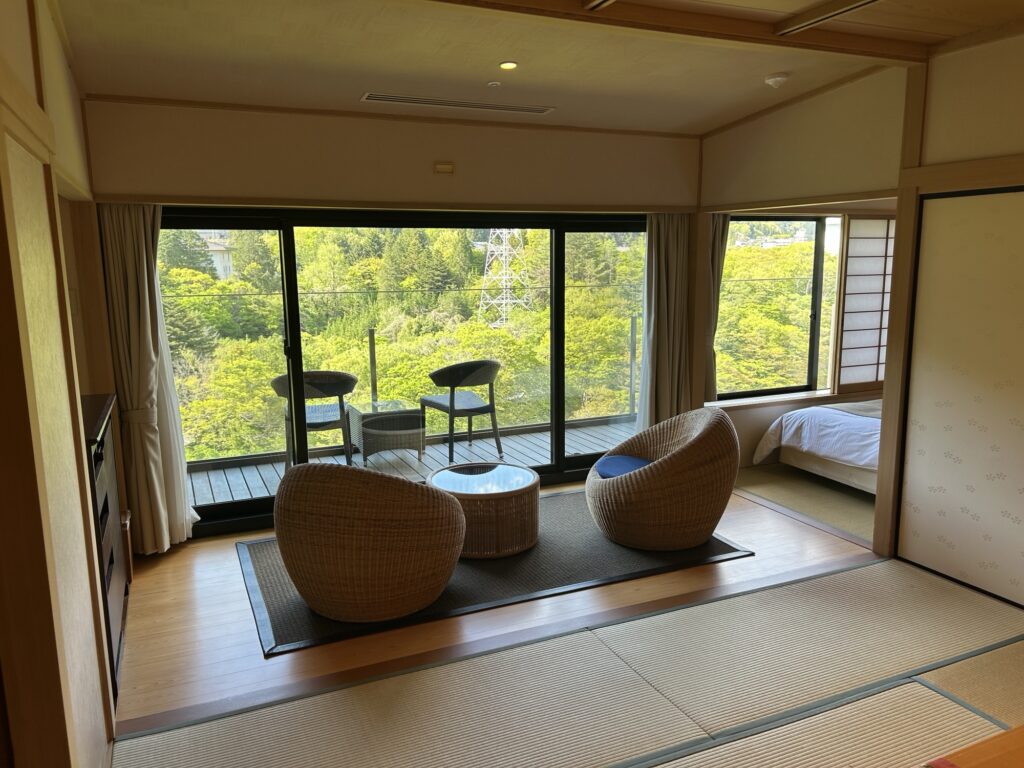 露天風呂はついていませんが、66平米の広いお部屋と絶景を眺められるテラスがあり、お部屋に入った時の感動は忘れられません。子供たちも広いお部屋とふかふかのベットに大興奮でした!